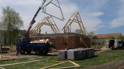 Монтаж стропильной системы одноэтажного дома, работа профессиональных строителей