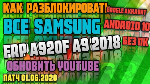 FRP | Все Samsung | A9 2018 | Сброс аккаунта Google Android 10 | U3 | июнь 2020 | Обновить YouTube