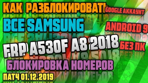 FRP | ВСЕ Samsung | Сброс Google аккаунта | БЕЗ ПК! | A8 2018 | A530F | Android 9