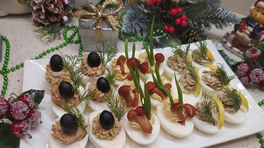 Вкусная закуска на Новогодний стол! Три вида начинки для фарширования яиц!🎄