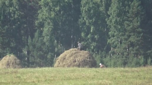 Наш парень Володя Васильев мечет сено в стогах 1часть.