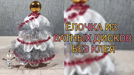 Делаем ёлочку из ватных дисков без клея. Идея поделки с ребёнком.