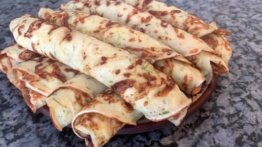 Показываю свой рецепт сырных блинчиков с укропом и чесноком