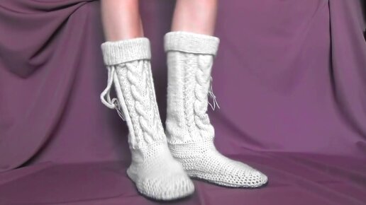 Показываю как вязать спицами и крючком домашние сапожки с косами