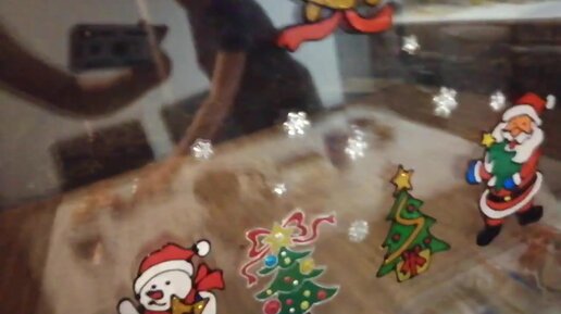 Украшаем окна на Новый год, снежинки ёлочки дед мороз снеговик из селикона!