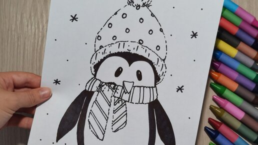 Как нарисовать пингвина. Новогодние рисунки. Пошагово