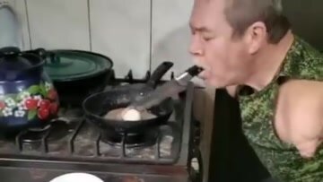 Как мужчина без рук готовит себе пищу когда нету никого дома