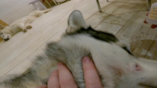 Папа Хаски кусает редко, но метко и сильно. Обрабатываю дырки на морде у Шанса.
