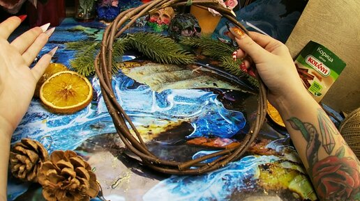 Как сделать венок с сушеными апельсинами и корицей своми руками.