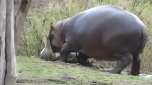 Бегемот безжалостно терзает беззащитную газель