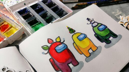 Как нарисовать новогоднего героя игры "Амонг ас"