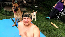 Выехали с семьёй на природу с ночевкой. Наши собаки сходят с ума.