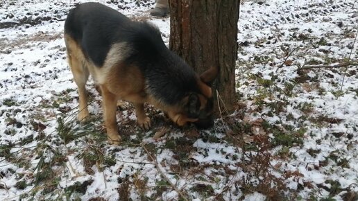 Немецкая овчарка на прогулке. Вынюхиваем.