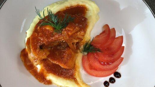 #Битва шефов. Зубатка в томате с чили, на картофельном пюре. Интересное и несложное блюдо.