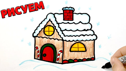Рисунок на новый год - новогодний домик Деда Мороза.