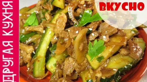 Популярный корейский рецепт узнал от друга / Салат из огурцов и мяса