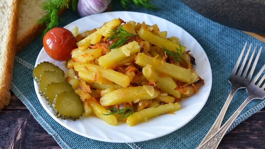 🥔 Жареная картошка с морковью, луком и чесноком на сковороде — видео рецепт