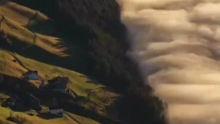 Туман разбивается об горы в Южном Тироле, Италия.