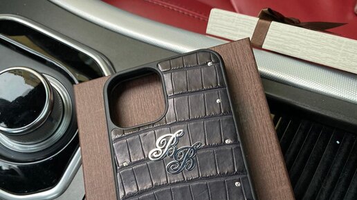 Противоударный чёрный чехол из крокодила с инициалами из серебра Mobcase 1263 для iPhone 12 Pro