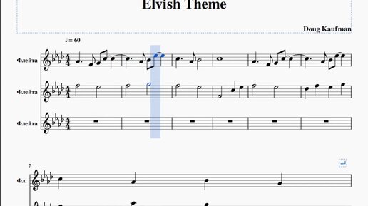 Ноты мелодии Elvish Theme из игры "Битва за Веснот" для трех флейт