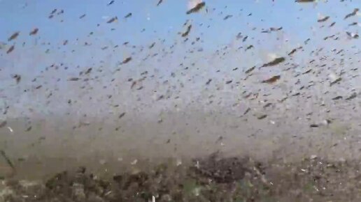 Саранча, собравшись в стаи пожирает все что попадается ей на пути ни оставляя ничего, стихийное бедствие для полей и плантаций.