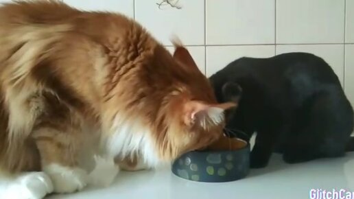 Мейн кун Стёпа и кот Тихон. Совместная трапеза.