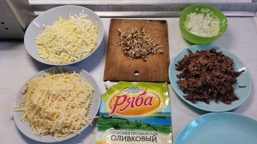 Салат "Мужской каприз" с вареной говядиной. На праздничный стол или просто так.
