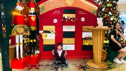 Рождественская фотозона в одном из гипермаркетов в Хошимине. Очереди чтобы сделать фото около большой плазмы с виде снега и ёлок