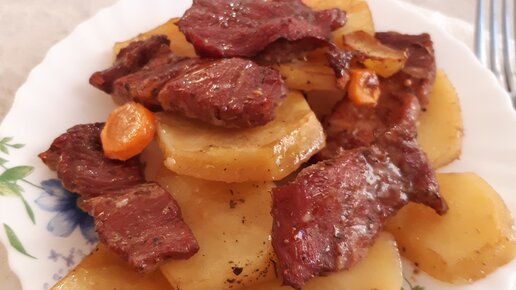 Сытный ужин. Свинина с гарниром из картофеля и моркови.