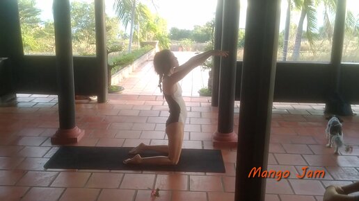 Прекрасная девушка Юлия демонстрирует йога асаны. Йога-дом во Вьетнаме, с видом на море