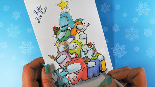 Как нарисовать Новогоднюю открытку в стиле Among Us.