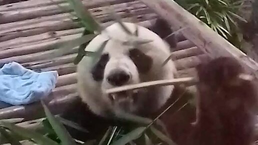 Панда в зоопарке Чиангмая обедает бамбуком