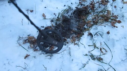 Первый сигнал в зимнем лесу в замерзшей земле. Пришлось поковыряться. В итоге металлическая банка