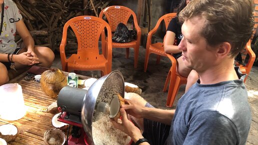Делаем кокосовое масло во Вьетнаме. Показываю как открывать орехи и извлекать мякоть