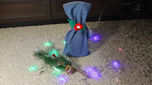 Берём старые джинсы и бутылку с напитком (идём вручать подарок)