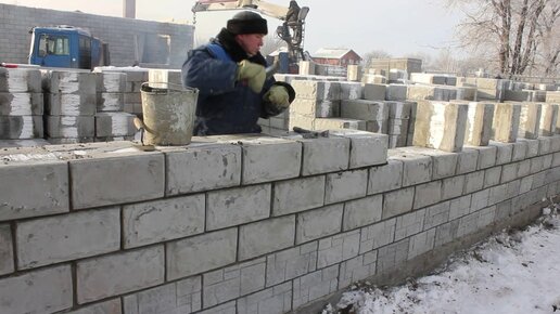 Кладка блоков и пропенивание швов