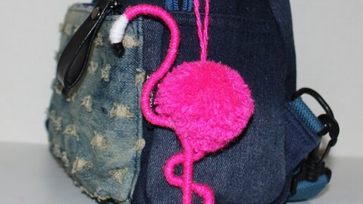 DIY Flamingo Pom Pom Keychain. Pink Flamingo with Pom Pom