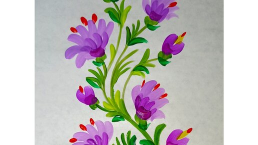 Сиреневые стилизованные цветы - рисунок гуашью.