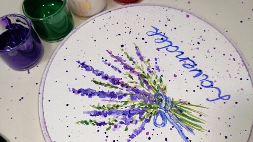 Украсила подставку под кружку, нарисовав лавандовый букет.