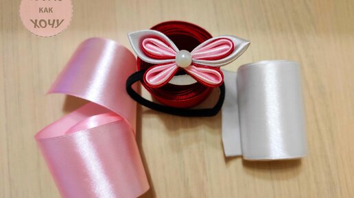 Бабочки на моей голове. Украсила обычную резинку в технике канзаши