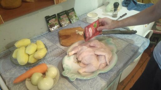 ЦЕЛЬНАЯ курица с картофелем в духовке в казане