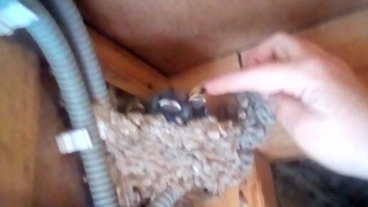 Кормление птенчиков ласточек