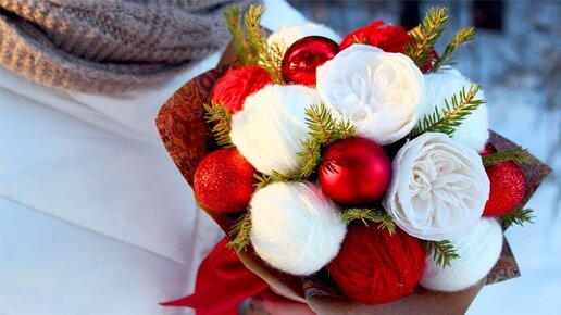 Букет из пряжи и ниток своими руками. Оригинальный подарок на новый год