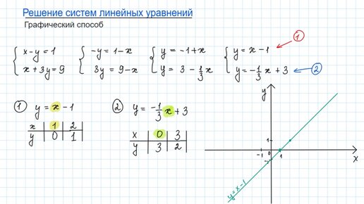 Решение систем линейных уравнений, графический способ. Алгебра 7 класс.