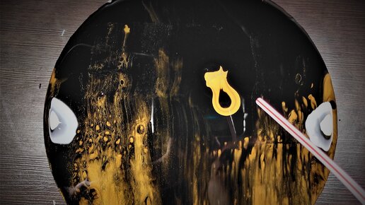 Выдуваю трубочкой золотые цветы на черном фоне.