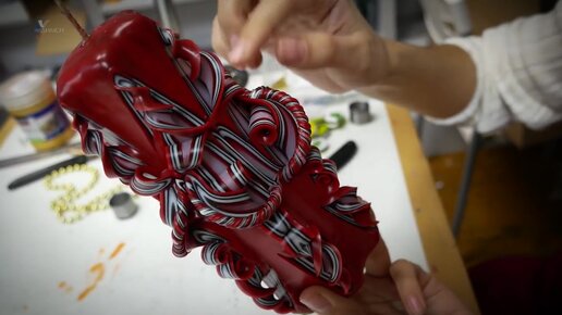 Ярко-красная резная свеча
