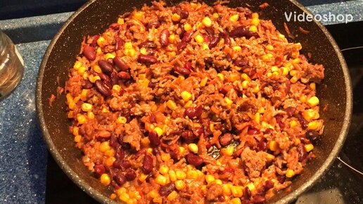 Мясной фарш с овощами и фасолью по-мексиканскию
