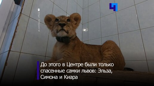 Львенок Зевс начинает знакомиться с дамами Центра реабилитации животных «Велес»