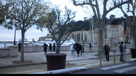 У всех яхты или что там такое? Пасмурный день, а на набережную по лестнице много людей спускается.