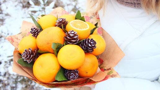 КАК СДЕЛАТЬ НОВОГОДНИЙ БУКЕТ ИЗ ФРУКТОВ СВОИМИ РУКАМИ | БУКЕТ МАНДАРИН